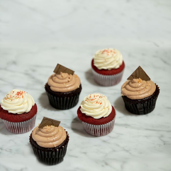 3 Red Velvet/Cream cheese Icing, 3 Chocolate Cupcakes / Hazelnut Buttercream